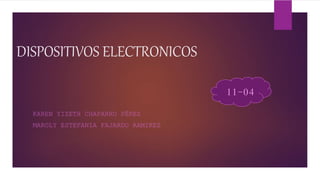 El documento proporciona información sobre varios dispositivos electrónicos básicos como el diodo, transistor, condensador, transformador, resistencia, corriente continua, corriente alterna y otros. Explica sus funciones, símbolos y aplicaciones comunes.