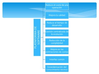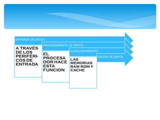 El documento describe los componentes de hardware y software que componen una plataforma informática. Explica que el hardware incluye elementos como la tarjeta madre, procesador y memoria, mientras que el software incluye el sistema operativo y entornos de programación. También define diferentes tipos de periféricos como entrada, salida y almacenamiento, dando ejemplos como el teclado, monitor e impresora.