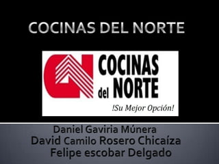 Cocinas del Norte es una empresa colombiana dedicada a la fabricación de muebles para el hogar desde 1995, brindando un excelente servicio y precios competitivos. La empresa busca ser líder en el mercado de muebles a través de la innovación, diseño, productividad y calidad, destacándose por su servicio al cliente. Actualmente cuenta con 20 empleados distribuidos en 3 sucursales y se especializa en la producción de muebles de cocina, baño y closets.