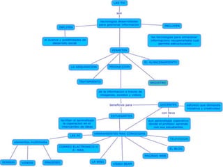 Este documento describe las tecnologías de la información y la comunicación (TIC) y su papel en la educación. Define las TIC como herramientas computacionales e informáticas que procesan y presentan información. Explica cómo las TIC han transformado los procesos de aprendizaje a lo largo del tiempo e impulsado innovaciones educativas como las aulas digitales. También describe plataformas virtuales, redes sociales como Facebook, Twitter y MySpace, y cómo estas herramientas se usan cada vez más en entornos educativos.