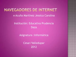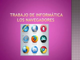 El documento habla sobre diferentes navegadores web como Safari, Mozilla Firefox, Internet Explorer, Google Chrome, Flock, y Opera. Describe las características y funcionalidades de cada uno. También incluye una estadística que muestra que Internet Explorer tiene el mayor porcentaje de usuarios (83,91%), seguido de Mozilla Firefox (13,06%).