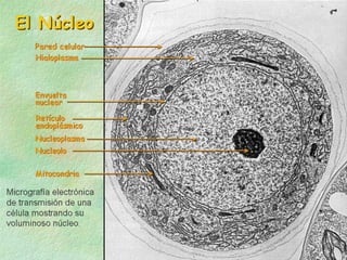 El documento describe la historia del descubrimiento de la célula y la teoría celular. Explica que Antony van Leeuwenhoek observó células como protozoos y glóbulos rojos usando un microscopio simple en el siglo XVII. Estos estudios y otros posteriores llevaron al establecimiento de la teoría celular en el siglo XIX, la cual establece que todas las células vienen de otras células y contienen la información hereditaria.