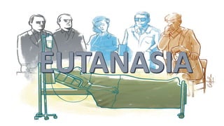 La eutanasia puede ser directa o indirecta. La eutanasia directa acelera la muerte de un paciente con enfermedad incurable mediante fármacos letales o la suspensión de tratamiento, mientras que la eutanasia indirecta intenta aliviar el dolor aunque pueda acelerar la muerte. Algunas religiones y códigos médicos se oponen a la eutanasia. Países como Holanda, Bélgica y México tienen leyes que permiten formas limitadas de eutanasia pasiva pero no activa.