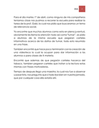 El documento resume las actividades de 5 días de observación práctica docente (OPD IV) en una escuela. Cada día incluye observaciones de clases, aplicación de encuestas a estudiantes, ayuda a maestros con calificaciones y participación en eventos escolares como la formación de un nuevo grupo de escolta estudiantil.
