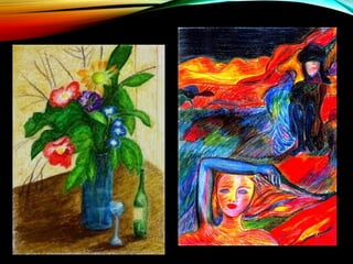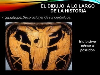 Este documento describe la historia y evolución del dibujo a lo largo de los tiempos, desde los griegos hasta la actualidad. Explica diferentes tipos de dibujo como el boceto, descriptivo, analítico y técnico. También cubre materiales y técnicas como líneas, puntos, manchas, lápices, carboncillo y más. Finalmente, propone una actividad práctica de dibujo.