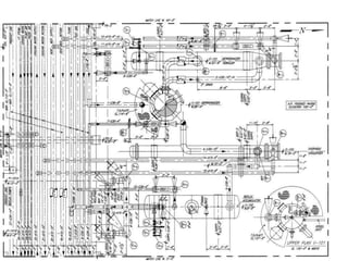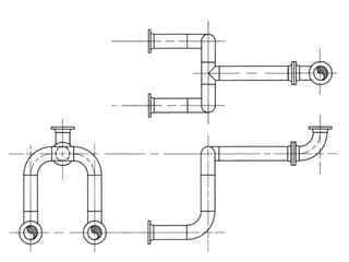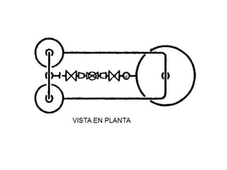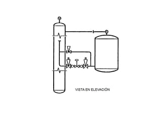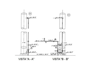 El documento describe los diferentes tipos de diagramas utilizados en el diseño e ingeniería de sistemas de tuberías, incluyendo diagramas de flujo de proceso, diagramas de tubería e instrumentación, y diagramas de flujo de servicios. Explica los símbolos y convenciones utilizados en cada tipo de diagrama para representar equipos, tuberías, instrumentos y flujos de materiales.
