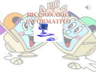 Este documento presenta un diccionario informático con definiciones breves de varios términos clave de computación ordenados de la A a la Z, incluyendo animación, almacenamiento, archivo, back up, bit, cache, demo, dropper, email, error 404, escanear, firefox, favoritos, fuente de poder, google, hardware, http, hoja de cálculo, icono, impresora, imagen, java, jabber, megabit, memoria, micrófono, notebook, office, ordenador, online, página web, panel de control, pantalla, rat
