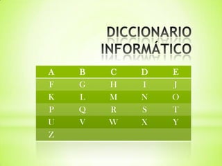 Este documento contiene definiciones de varios términos relacionados con tecnologías de la información. Define palabras como algoritmo, base de datos, chip, código, hardware, software, entre otros. También explica conceptos como análisis funcional, formateo, lenguaje de programación, tipos de datos, y más.