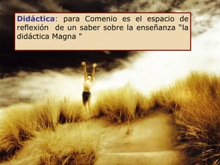 El documento presenta una introducción a los conceptos clave de la didáctica como disciplina pedagógica, incluyendo definiciones, ámbitos de estudio, funciones y métodos de enseñanza y aprendizaje. Explica que la didáctica estudia el proceso de enseñanza-aprendizaje de manera sistemática y eficiente, analizando al educando, al maestro, la propuesta pedagógica y los métodos, entre otros aspectos. También describe diferentes estrategias metodológicas como los métodos expositivo,