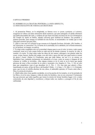 El documento trata sobre la naturaleza y finalidad del ser humano según la obra de Juan Amós Comenio, enfatizando la dignidad del hombre como la creación más excelente y su destino hacia una vida eterna unida a Dios. Se argumenta que la vida terrenal es un periodo de preparación para una existencia superior, y que todos los esfuerzos humanos son insuficientes para alcanzar la plenitud deseada en este mundo. La obra llama a la reflexión sobre el propósito de nuestra vida y la importancia de vivir de acuerdo a esa grandiosa dignidad.