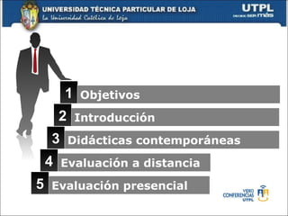 El documento presenta un módulo de maestría en pedagogía centrado en didácticas contemporáneas, con el objetivo de desarrollar una educación humanista y analizar la relación de diferentes enfoques pedagógicos. Se aborda la importancia de metodologías activas y el aprendizaje basado en problemas, destacando la necesidad de una evaluación tanto a distancia como presencial. Asimismo, se enfatiza la preparación de estudiantes competentes y felices en una sociedad del conocimiento.