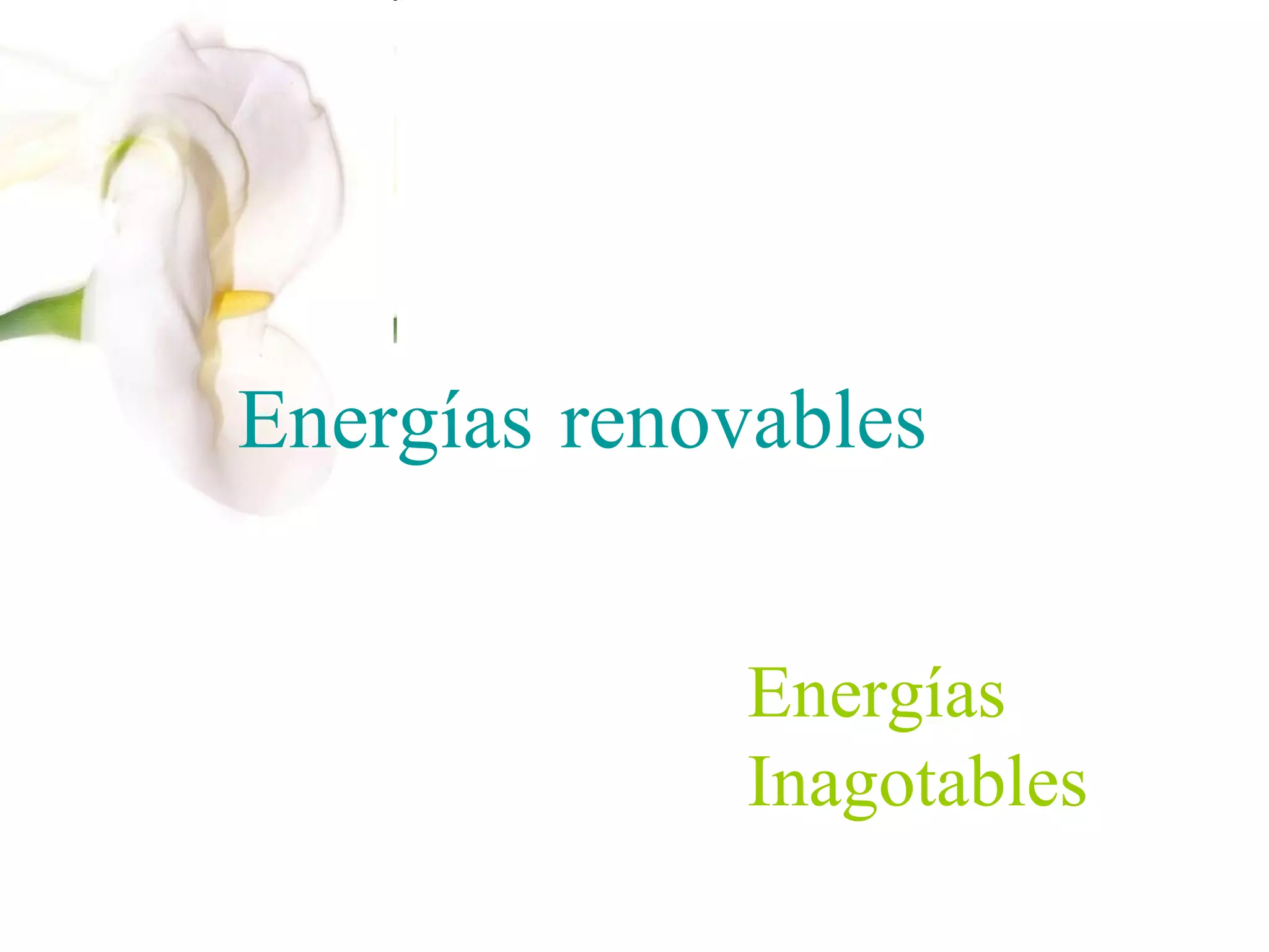 El documento habla sobre diferentes tipos de energías renovables como la solar, eólica, hidráulica, geotérmica y mareomotriz. Proporciona información sobre la capacidad instalada de energía eólica en varios países entre 2004 y 2006, y señala que la energía hidráulica tiene ventajas como ser limpia y renovable pero también desventajas como requerir grandes infraestructuras y puede tener impacto ambiental. Explica que la energía geotérmica aprovecha el calor del interior de la Tierra y que