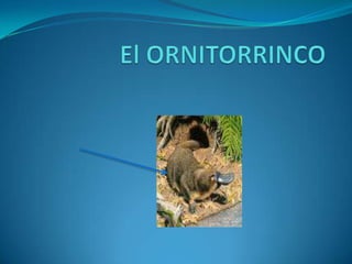 El ornitorrinco es un mamífero endémico de Australia que se alimenta de invertebrados y plantas acuáticas. Mide entre 30-45 cm de largo, pesa hasta 4 kg, y pasa la mayor parte del tiempo nadando en ríos y lagos mientras caza con su pico tactil. Construye nidos similares a los de las aves donde deposita huevos.