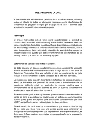 Este documento presenta el diseño de un enlace de microondas entre dos puntos. Se describen los elementos técnicos necesarios como tarjetas controladoras, antenas y cableado. También se detallan los pasos para la construcción de las estaciones terminales y repetidoras, así como los costos asociados. El objetivo es implementar este enlace de microondas de manera económica y que sea fácil de construir, instalar y mantener.