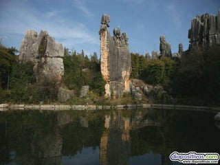 El Bosque de Piedra de Shilin en la provincia china de Yunnán es un paisaje kárstico formado por la erosión de piedras calizas durante 270 millones de años, que atrae a muchos turistas diariamente. La UNESCO lo ha declarado patrimonio de la humanidad y partes se han transformado en jardines con hierba y árboles que suavizan el paisaje rocoso, mientras que otras zonas permanecen más agrestes.