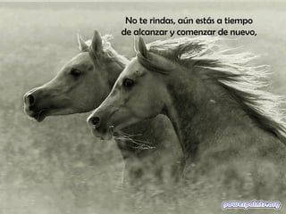 Este poema anima al lector a no rendirse y continuar persiguiendo sus sueños a pesar de los obstáculos. Aunque haya miedo o fracasos, la vida sigue y siempre hay esperanza mientras haya fuego en el alma y vida en los sueños. Cada día es una nueva oportunidad para retomar el vuelo y celebrar la vida.