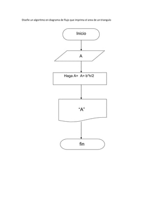 El usuario ingresa la base y la altura de un triángulo, el algoritmo calcula el área multiplicando la base por la altura y dividiéndolo entre 2, luego imprime el área calculada.
