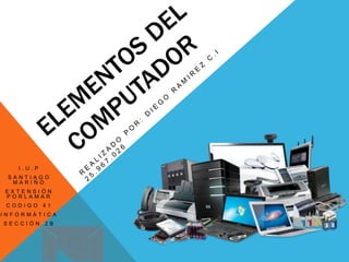 El documento explica qué es un computador, destacando su papel como máquina electrónica que procesa datos y realiza múltiples tareas cotidianas. Se detallan las partes del hardware, incluyendo tipos como portátiles y de escritorio, y dispositivos de entrada, procesamiento, salida y almacenamiento. También se menciona el software, categorizándolo por uso y licencia.