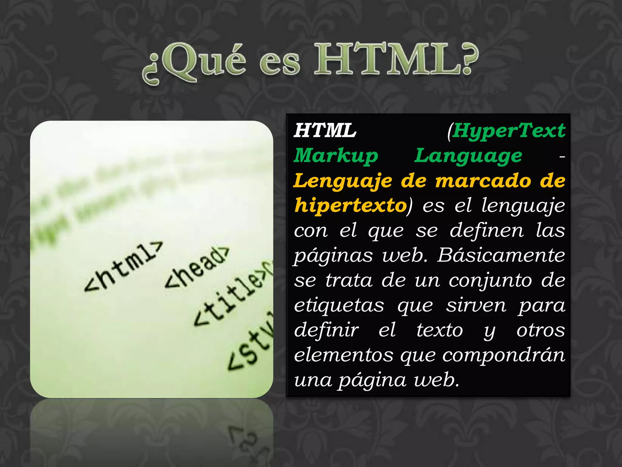 El documento describe las diferencias entre HTML y XML. HTML es el lenguaje utilizado para crear páginas web y se encarga de formatear los datos para mostrarlos, mientras que XML fue concebido para describir y organizar información de una manera portable entre aplicaciones. Aunque nacen del mismo estándar SGML, HTML se enfoca en la presentación y XML en la descripción de contenido.