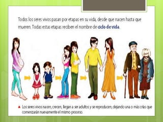 El documento describe las características principales de los seres vivos. Explica que los seres vivos se dividen en cuatro grupos: animales, plantas, hongos y microbios. Luego enumera seis características clave que comparten todos los seres vivos: están compuestos de células, respiran, usan energía, crecen, se reproducen y se mueven. Finalmente, señala que los seres vivos tienen la capacidad de responder y adaptarse a su entorno.