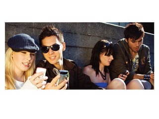 El documento resume ejemplos de cómo diferentes marcas han utilizado las redes sociales y la comunicación digital para conectarse con los consumidores. Kraft lanzó una aplicación para iPhone que ofrece recetas y herramientas de planificación de comidas. Walmart creó una versión móvil de su sitio que permite buscar productos, ubicar tiendas y crear listas de compras. Puma lanzó una iniciativa móvil para conectar a los fanáticos del fútbol que comparten el mismo equipo.