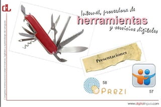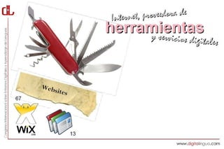 Este documento describe varias herramientas y espacios digitales que pueden ser útiles para el aprendizaje y la enseñanza de lenguas, como navegadores, Google Drive, redes sociales, blogs, y entornos de aprendizaje. El objetivo es ayudar a los profesores a desarrollar su competencia digital y generar comunicación y conocimiento tanto dentro como fuera del aula.