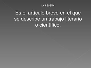 El documento describe tres tipos de elementos que pueden encontrarse al inicio de una obra: la dedicatoria, que rinde homenaje a personas importantes para el autor; la reseña, que ofrece una breve descripción del contenido de la obra; y las antologías, que suelen incluir una introducción que resume cada parte.