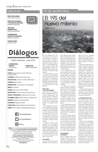 El documento habla sobre el Premio Nacional de Periodismo 2016 otorgado a periodistas egresados de la Escuela de Periodismo Carlos Septién García. También menciona que la escuela recibió el Premio Pasaporte Abierto, un reconocimiento internacional al periodismo turístico. Finalmente, narra brevemente sobre el terremoto del 19 de septiembre de 1985 en la Ciudad de México y cómo 32 años después, el 19 de septiembre de 2017, ocurrió otro fuerte sismo.