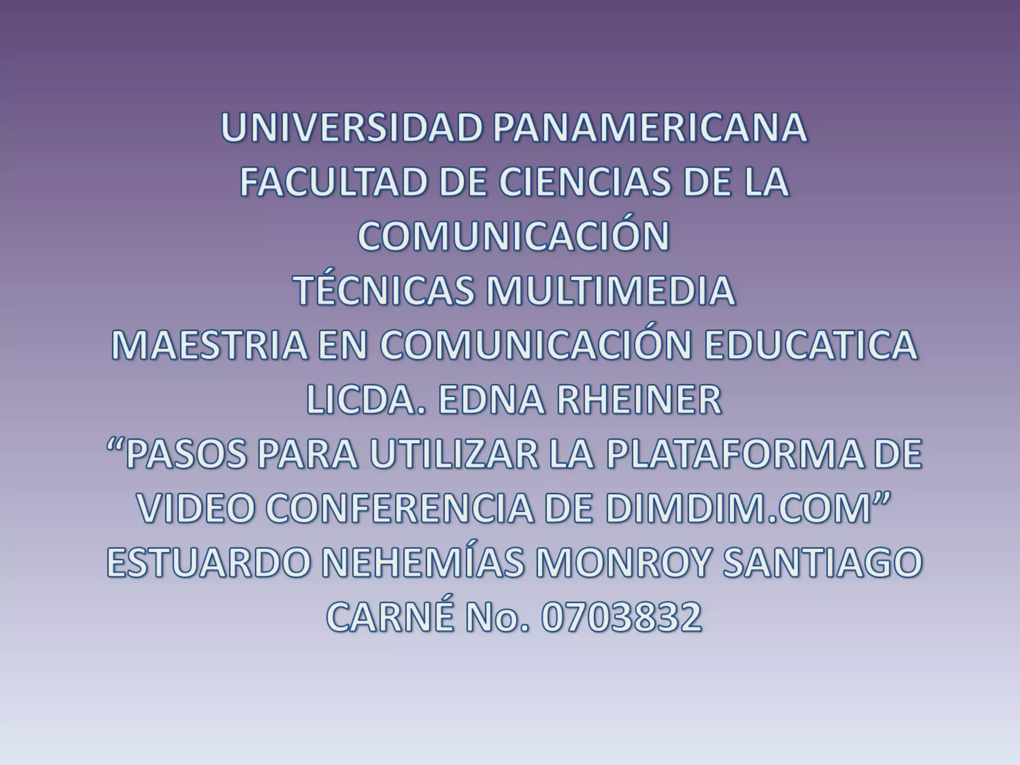El documento proporciona instrucciones para registrarse en la plataforma de conferencias DimDim, invitar amigos, comunicarse a través de la pizarra, audio y chat, compartir el control de la presentación, y mostrar una presentación de PowerPoint a los invitados.