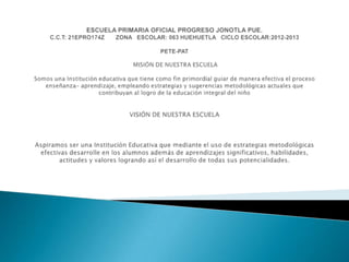 El documento describe las actividades planeadas de una escuela para optimizar el tiempo y beneficiar el desarrollo de competencias de los estudiantes. La escuela mantendrá un registro de asistencia de maestros y estudiantes, realizará reuniones bimestrales con padres y maestros, y llevará a cabo ceremonias y deberes escolares semanales de acuerdo con su agenda anual descriptiva.