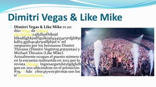Dimitri Vegas & Like Mike es un dúo belga de música electrónica compuesto por los hermanos Dimitri y Michael Thivaios. Actualmente ocupan el puesto número 6 en la encuesta de DJmag y son conocidos por sus presentaciones en Tomorrowland.