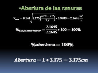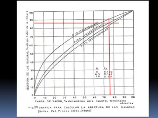 El documento presenta la información de un equipo de trabajo compuesto por 7 integrantes y describe conceptos clave relacionados con la dinámica de platos en columnas de destilación como la inundación, el arrastre, la eficiencia, las aberturas de las ranuras, la caída de presión por plato y otros parámetros importantes para el diseño de platos como la altura de liquido en la bajante y el tiempo de residencia. Se explican las ecuaciones y factores necesarios para calcular la capacidad máxima de vapor y otros valores de diseño.