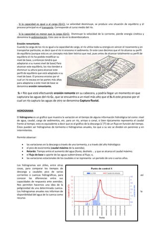 1) Los ríos se dividen en tres cursos: alto, medio y bajo, donde predomina la erosión, transporte y sedimentación respectivamente.