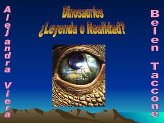 Los dinosaurios existieron realmente. Había varios tipos de dinosaurios como el Diplodocus, Velociraptor, Tiranosaurio, Ornithomimus y Amargasaurio. El documento explora si los dinosaurios son una leyenda o una realidad histórica.