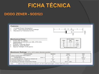 El documento discute varios tipos de diodos semiconductores utilizados en circuitos electrónicos, incluyendo diodos Zener, Schottky, rectificadores, túneles, varicap y LEDs. Cada tipo de diodo tiene funciones específicas, características técnicas y aplicaciones en la conversión de corriente alterna a corriente directa, así como en el manejo de señales de alta frecuencia. Se destaca la versatilidad de los diodos en la electrónica moderna y la importancia de entender sus propiedades para su aplicación efectiva.