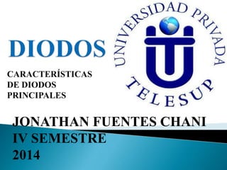 Este documento describe diferentes tipos de diodos, incluyendo sus características y aplicaciones. Explica que un diodo es un dispositivo semiconductor de dos terminales que permite el paso de corriente en un solo sentido. Luego describe diodos específicos como diodos rectificadores, diodos LED, diodos zener y diodos túnel, explicando sus propiedades distintivas y usos comunes. Finalmente, proporciona enlaces a recursos adicionales sobre diodos.