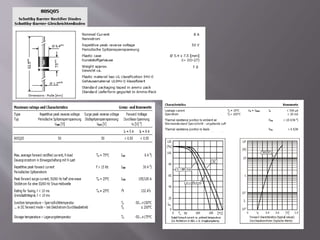 El documento detalla diversos tipos de diodos semiconductores y sus funciones en circuitos electrónicos, incluyendo diodos rectificadores, Zener, Schottky, varicap y túnel. Explica características técnicas como tensiones y corrientes nominales, así como aplicaciones específicas de cada tipo de diodo. Se enfatiza la importancia de entender las propiedades de los diodos para su uso eficaz en circuitos eléctricos y electrónicos.