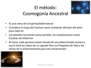 Este documento resume un curso sobre la cosmogonía ancestral que explora la pareja interna divina de cada persona compuesta por su Diosa y su Héroe. Explica que según la fecha de nacimiento, cada persona tiene un arquetipo femenino y masculino asignado que influye en sus desafíos y propósito de vida. El curso enseña a identificar estos arquetipos y sanarlos a través de ceremonias para lograr un equilibrio entre lo femenino y masculino que traiga resultados positivos.