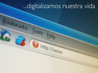 Este documento describe el contexto digital en el que viven los jóvenes de hoy. Explica que la información está disponible en grandes volúmenes y de forma muy rápida a través de Internet. También describe cómo los jóvenes ya no solo consumen información, sino que también la producen y comparten a través de redes sociales y plataformas como YouTube y Wikipedia. Finalmente, señala que los jóvenes tienen ahora más poder para participar y colaborar digitalmente.