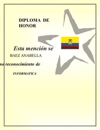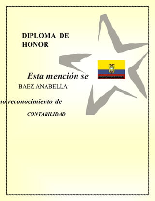 El documento contiene diplomas de honor concedidos a varios estudiantes por sus logros académicos en diferentes asignaturas como informática, contabilidad, física, ciencias sociales y química.