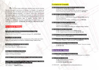 El documento describe los eventos planeados para conmemorar el 77o aniversario de la Desbandá de 1937, cuando miles de personas huyeron de Málaga tras su captura por las tropas franquistas. La conmemoración incluirá exposiciones, marchas, presentaciones de libros y películas, y actos de homenaje en varias ciudades de las provincias de Málaga, Granada y Almería entre el 30 de enero y el 2 de marzo de 2014. El objetivo es rendir homenaje a las víctimas y promover la verdad
