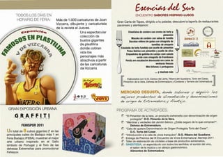 El documento se refiere a un evento gastronómico en el que se presentan diversas tapas y productos de la región de Extremadura y Alentejo, junto con exposiciones de caricaturas y actividades relacionadas con la cultura local. Este encuentro incluye catas de vinos, quesos y productos como el pimentón y la torta del casar, destacando la importancia de la gastronomía en la promoción de la zona. Además, se menciona la participación de varios expositores y actividades culturales para resaltar la riqueza alimentaria y cultural de la región.