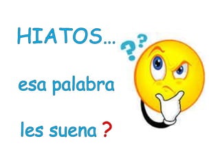 Este documento explica los conceptos de diptongo, triptongo y hiato en español. Un diptongo es la unión de dos vocales pronunciadas en la misma sílaba siguiendo reglas de acentuación. Un triptongo es la unión de tres vocales pronunciadas en una misma sílaba, donde la vocal del medio es abierta. Un hiato ocurre cuando dos vocales se pronuncian en sílabas distintas. El documento proporciona ejemplos para ilustrar cada concepto y las reglas de acentuación correspondientes.