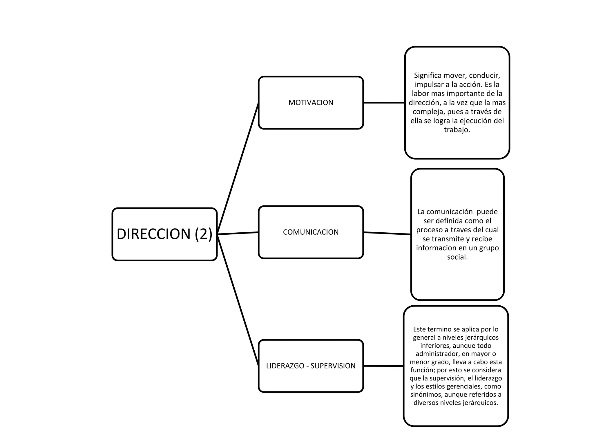 El documento trata sobre la motivación, comunicación y liderazgo/supervisión. La motivación se refiere a impulsar la acción a través del trabajo. La comunicación es el proceso de transmitir y recibir información en un grupo social. El liderazgo y la supervisión se aplican a niveles jerárquicos inferiores aunque todos los administradores llevan a cabo estas funciones en mayor o menor grado.
