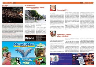 El documento presenta noticias sobre la política local y autonómica de Benidorm. Se anuncia que las farolas de la Avenida Mediterráneo serán reemplazadas después de 60 años. El alcalde de Benidorm, Agustín Navarro, se reunió con el candidato a la presidencia de la Generalitat, Ximo Puig, para presentarle diez prioridades para la ciudad. Puig expresó su compromiso con Benidorm y su intención de establecer la nueva Conselleria de Turismo en la ciudad.