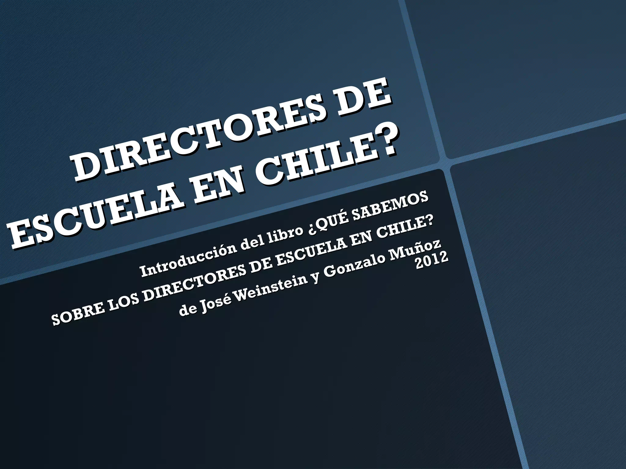 Los directores de escuela en Chile suelen ser personas mayores de 51 años con amplia experiencia. Si bien existe una oferta formativa creciente para directores, aún es necesario mejorar la regulación y el apoyo a los directores. Los directores manifiestan altos niveles de satisfacción con su trabajo a pesar de las exigencias y responsabilidades del cargo.