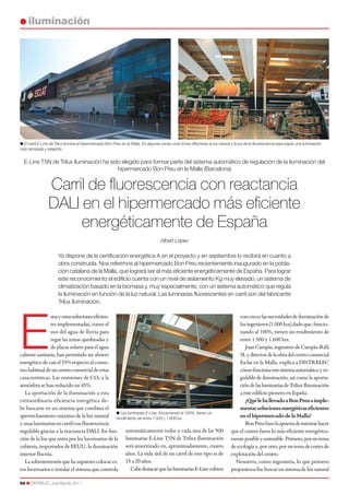 El hipermercado Bon Preu en La Malla ha implementado soluciones de eficiencia energética, logrando un ahorro del 55% en el consumo eléctrico y una reducción del 45% en las emisiones de CO2 mediante un sistema de iluminación automático y la utilización de luz natural. Las luminarias E-line de Trilux, junto con lucernarios importados de EE.UU., han contribuido significativamente a esta eficiencia, amortizándose en aproximadamente 4 años. El centro comercial está en vías de recibir la certificación energética de máxima categoría, destacándose como el más eficiente de España.