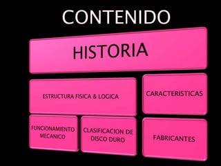 El primer disco duro apareció en 1956 y pesaba una tonelada con una capacidad de 5MB. La tecnología inicial consistía en recubrir un disco de metal con material magnético formateado en pistas y sectores donde se codificaba información binaria. A lo largo de los años, la industria de los discos duros ha experimentado numerosas fusiones y adquisiciones que han dado lugar a los principales fabricantes actuales como Seagate, Western Digital y Toshiba.