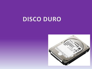 Un disco duro es un dispositivo de almacenamiento que contiene platos magnéticos giratorios donde se almacenan datos. Los datos se organizan utilizando un sistema de archivos que estructura la información en unidades como sectores y clústeres. Existen diferentes formatos como el físico, lógico y FAT que asignan esta estructura al disco duro.