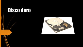 Un disco duro es un dispositivo de almacenamiento no volátil que utiliza discos rígidos giratorios y cabezales magnéticos para almacenar datos digitales de forma permanente. Un disco duro contiene uno o más platos giratorios que almacenan datos organizados en pistas, sectores y cilindros, y utiliza cabezales de lectura/escritura para acceder a la información almacenada. Las características clave de un disco duro incluyen su velocidad de rotación, tiempo de acceso, capacidad